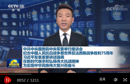 中共中央国务院中央军委举行座谈会 纪念中国人民抗日战争暨世界反法西斯战争胜利75周年 席大大发表重要讲话强调 在新时代继承和弘扬伟大抗战精神 为实现中华民族伟大复兴而奋斗