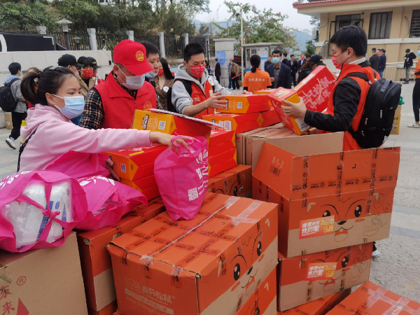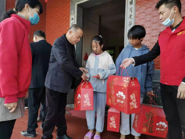 福建社会组织、爱心企业积极为父母就地过年的农村留守儿童捐赠过年物资。图片来源:福建省民政厅