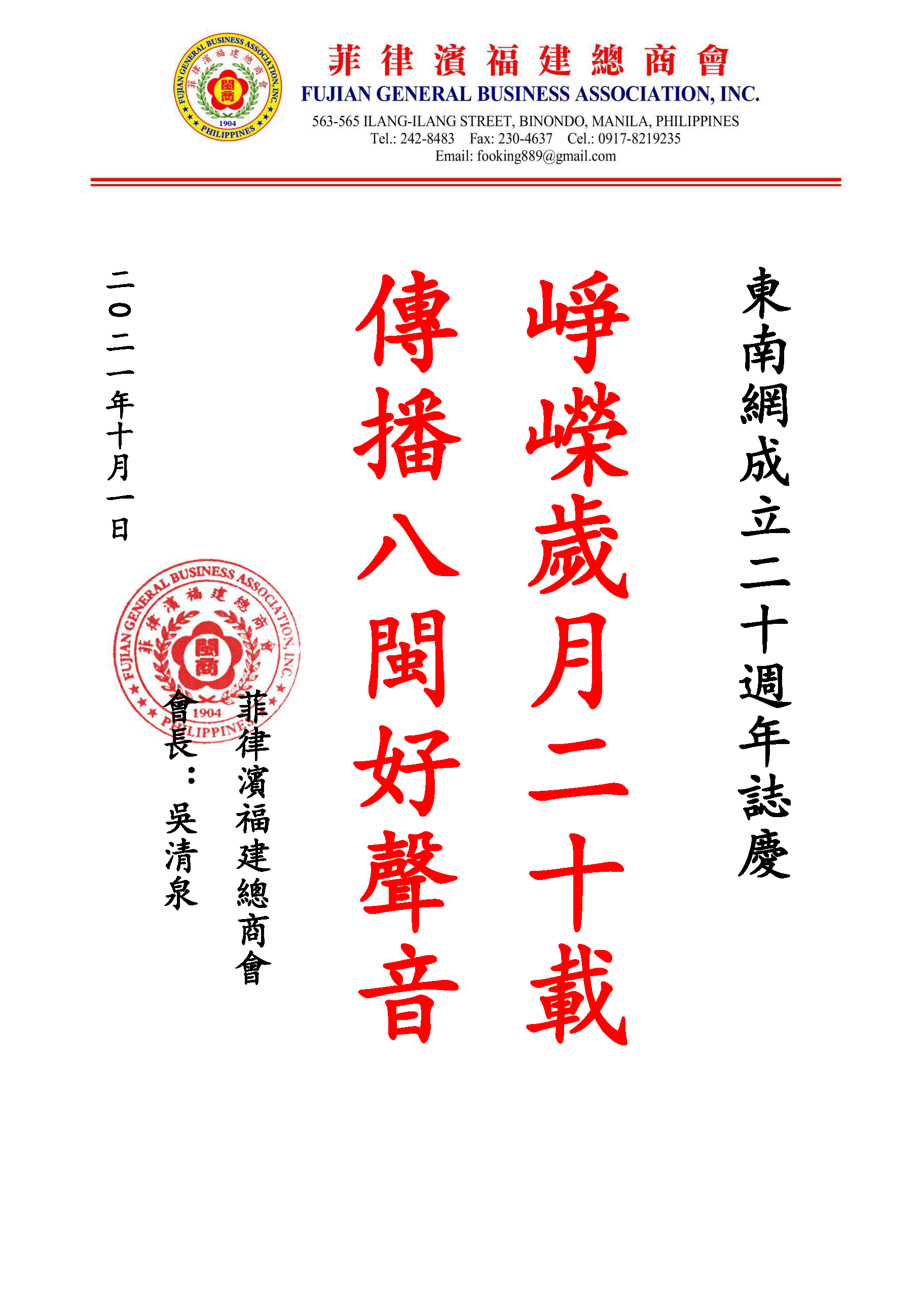 菲律宾福建总商会贺信