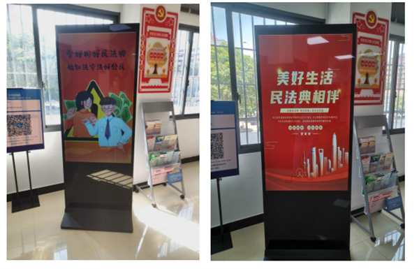 同时,马尾区退役军人服务中心在服务窗口,通过显示屏滚动播放普法宣传标语和海报,进一步浓厚普法宣传氛围。