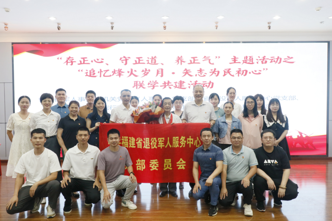 7月26日下午,厅机关党委(人事处)党支部联合省退役军人服务中心党支部、省肿瘤医院行政职能党总支以及仓山区退役军人事务局党支部,在福建省肿瘤医院学术厅开展“存正心、守正道、养正气”主题活动之“追忆烽火岁月·矢志为民初心”联学共建活动,邀请抗美援朝老战士、福建师大离休教师黄以孟讲述新时代老兵故事。省退役军人事务厅二级巡视员陈勇参加活动。 活动现场,与会党员干部共同观看抗美援朝老战士黄以孟人物故事宣传片——《信念的脚步》,倾听黄以孟讲述新时代老兵故事,深刻地体会到“报国寸心坚似铁”的军人情怀和“老骥伏枥,志在千里”的奉献精神。