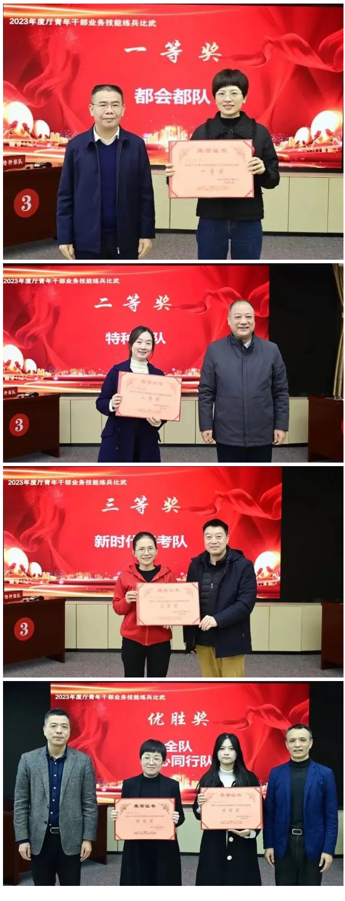 27日上午,举办现场知识竞赛,由青年干部组成的5支参赛队伍同台竞技,现场设置必答题、团队答题、风险挑战题、现场模拟接访四个环节。经过激烈角逐,精彩比拼,“都会都队”荣获一等奖,“特种部队”荣获二等奖,“新时代赶考队”荣获三等奖,“全队”“同心同行队”荣获优胜奖。