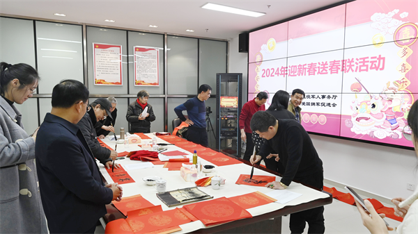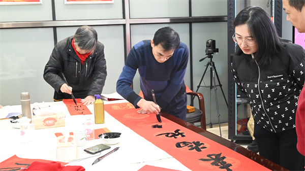 “全家平安添百福,满门和顺纳千祥”“一元复始龙增岁,万物生辉燕扳春”……活动现场红联铺张,墨香弥漫,书法家们下笔如行云流水,或苍劲有力,或秀气内敛,将浓浓的情谊和真诚的祝福洋溢在字里行间。不一会儿,一张张带着美好祝愿的“福”字,一幅幅寓意吉祥的春联便呈现在大家面前。前来迎春纳福的干部职工们络绎不绝,感受这份独特的文化关怀,同时认真挑选心仪的对联和“福”字,互相交流其中的寓意,现场一派欢乐祥和的气氛。