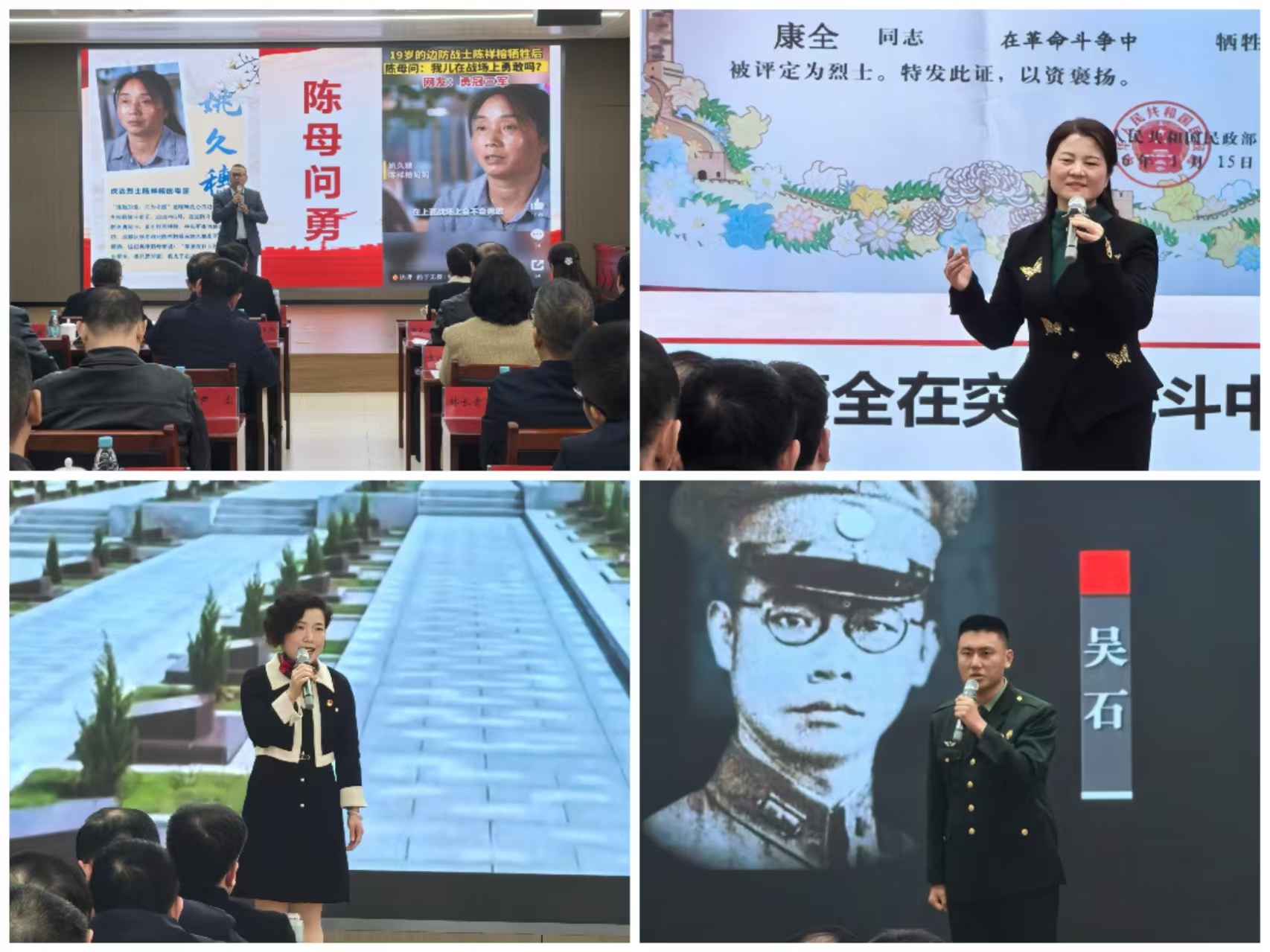 此次宣讲是同期举办的全省退役军人事务局长专题研讨班上的重要一课。省退役军人事务厅有关领导,全省设区市、平潭综合实验区、各县(市、区)退役军人事务局局长约120人参加活动。 宣讲活动中,陈祥榕烈士的堂伯兼老师陈臻苏、林在金烈士女儿林丽红、康氏革命家族后代康智敏、凯发k8市文林山革命烈士陵园讲解员陈喆源4位宣讲员用真挚的情感和生动的语言,讲述为民族独立解放、为国家繁荣富强、为百姓守护一方平安做出奉献和牺牲的英烈故事,传递烈士们坚定的革命信念和崇高的爱国情怀。其中,陈臻苏老师的宣讲,结合最新获知的陈祥榕烈士战斗故事和新成语故事“陈母问勇”的精神内涵,既感人肺腑又激励人心。康智敏和林丽红老师的宣讲让大家深入了解两位烈士后人的红色家史。陈喆源同志的宣讲,富有感染力和表现力,让到场聆听的吴石烈士后人十分感动,表示也要加入宣讲队伍中!