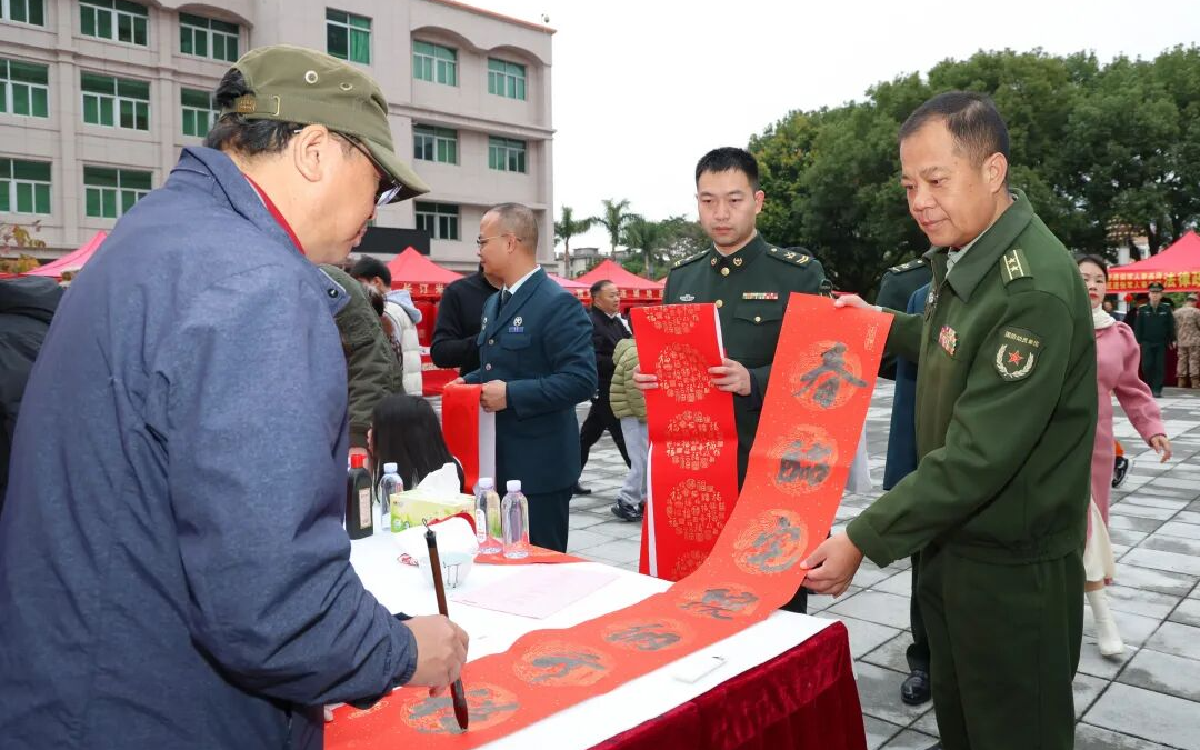 活动现场 厦门市“红领巾”讲习团的孩子们 为官兵表演原创说唱节目 军地书法家挥毫泼墨 为官兵书写春联、“福”字 通过文艺表演和书写春联 向官兵送上暖心祝福